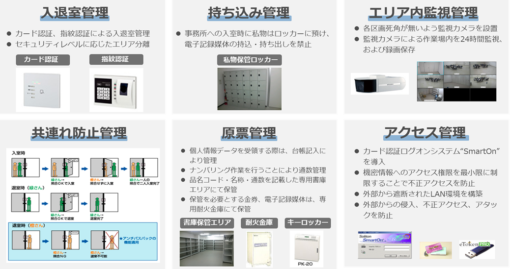 TOPPANではISO27001に準拠し、定期的な内部監査を通じて、ハイクラスのセキュリティ拠点を確保。自治体・官公庁、金融業界からの機微情報の業務を受託しております。詳しくはお問い合わせください。