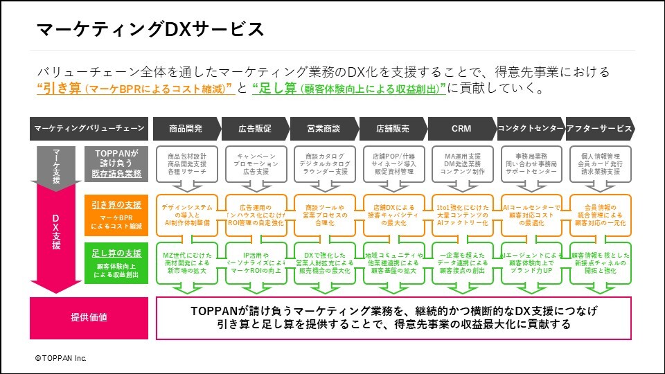 そこで目指しているのが、お客様の利益に貢献するための「引き算(コスト効率化・業務効率化)」と「足し算(成長戦略)」をセットで提案するモデルです。