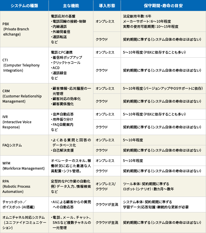 保守期間や寿命の目安がシステム基盤ごとに異なるため、参考にしてみてください。