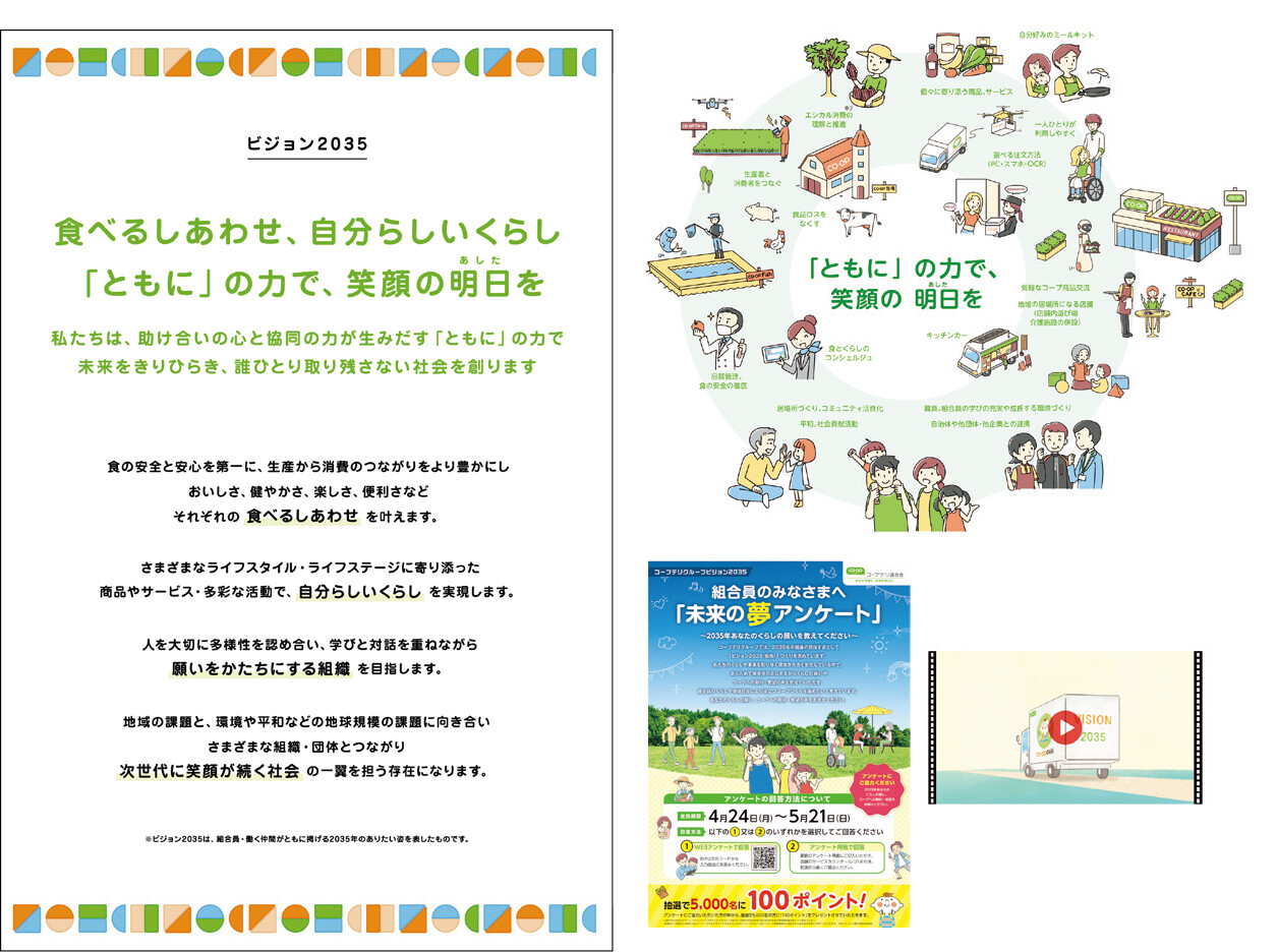 日本最大の生協連合である『コープデリグループ』は、より良い未来のくらしをつくるため、1都7県にまたがる組合員(=生協会員)と働く仲間で2035年のグループの姿を描き、545万人が担い手となって実現を目指すビジョンを策定。