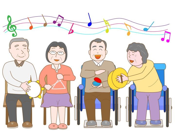 音楽レクでは、「花」「春が来た」「贈る言葉」といった春の名曲を合唱したり、歌詞に合わせて手や足を動かしたりすることで、ゆるやかな体操にもなります。
