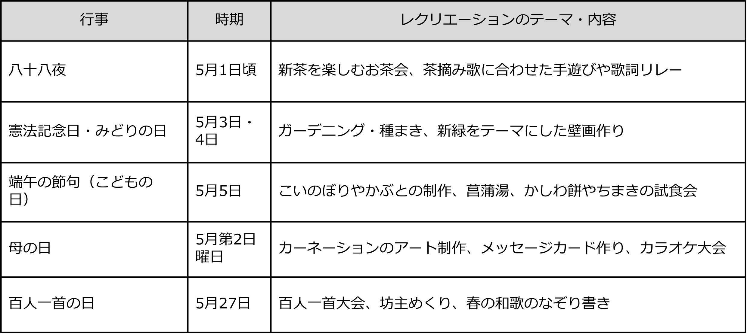 3|5月の行事とレクリエーションのテーマ