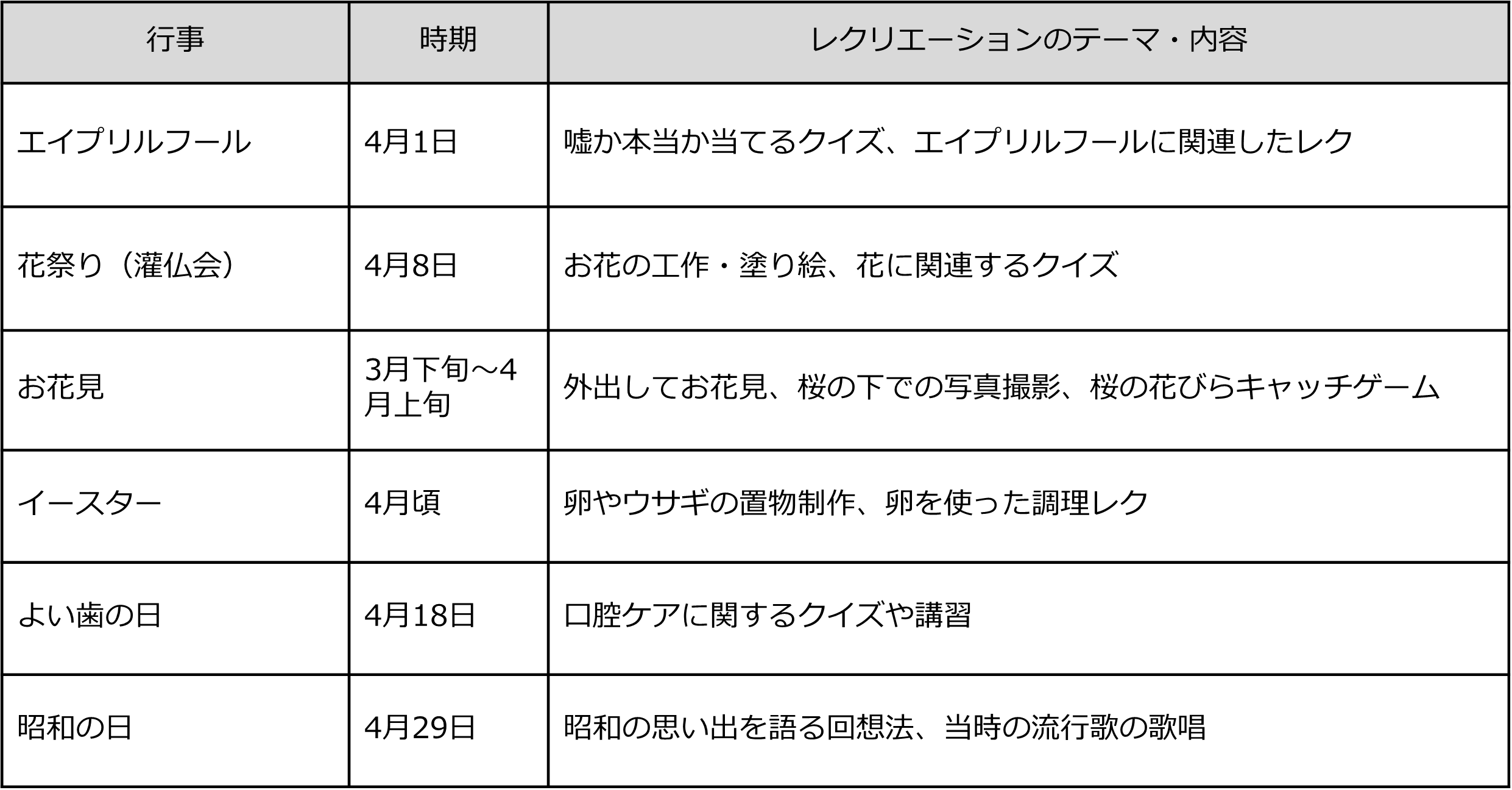 2|4月の行事とレクリエーションのテーマ