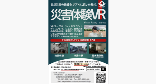 山口県では、県民の防災意識向上を目的に「災害体験VR」を30台導入。