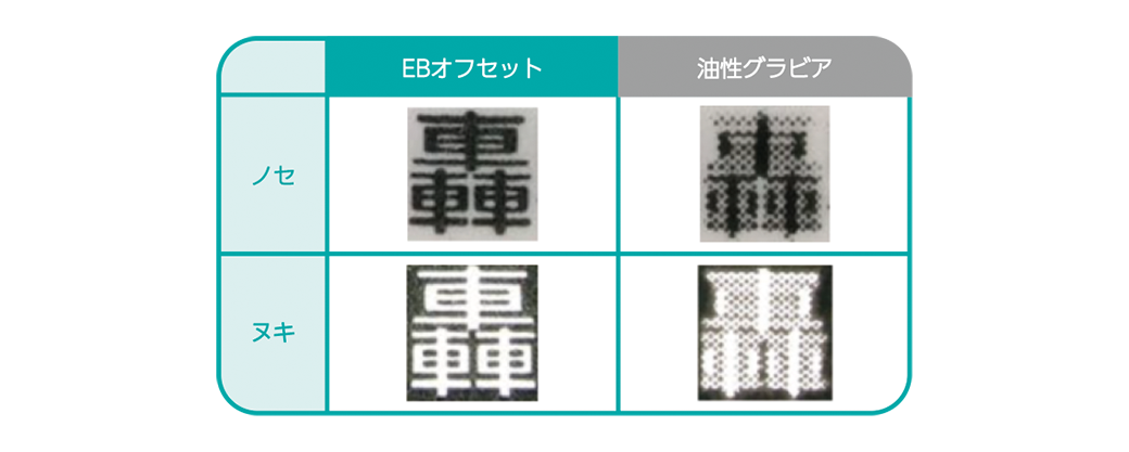 また、熱収縮しやすい基材への印刷も検討可能なため、従来グラビア印刷では印刷が困難だった基材へ表刷りを行うことで、