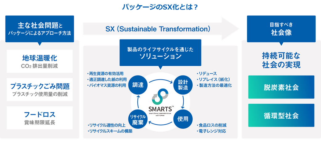 - サステナブルパッケージの提供 TOPPANは長年にわたって環境配慮型パッケージを製造してきました。環境にやさしい素材の採用、プラスチックの減容化や紙素材への置き換えなど、お客さまのサステナビリティ向上に貢献するパッケージを提供します。