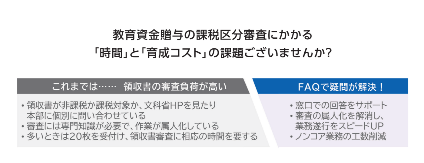 教育資金贈与の審査業務において、担当者の高齢化やノウハウの属人化、業務負荷の増大といった課題に直面されていませんか。