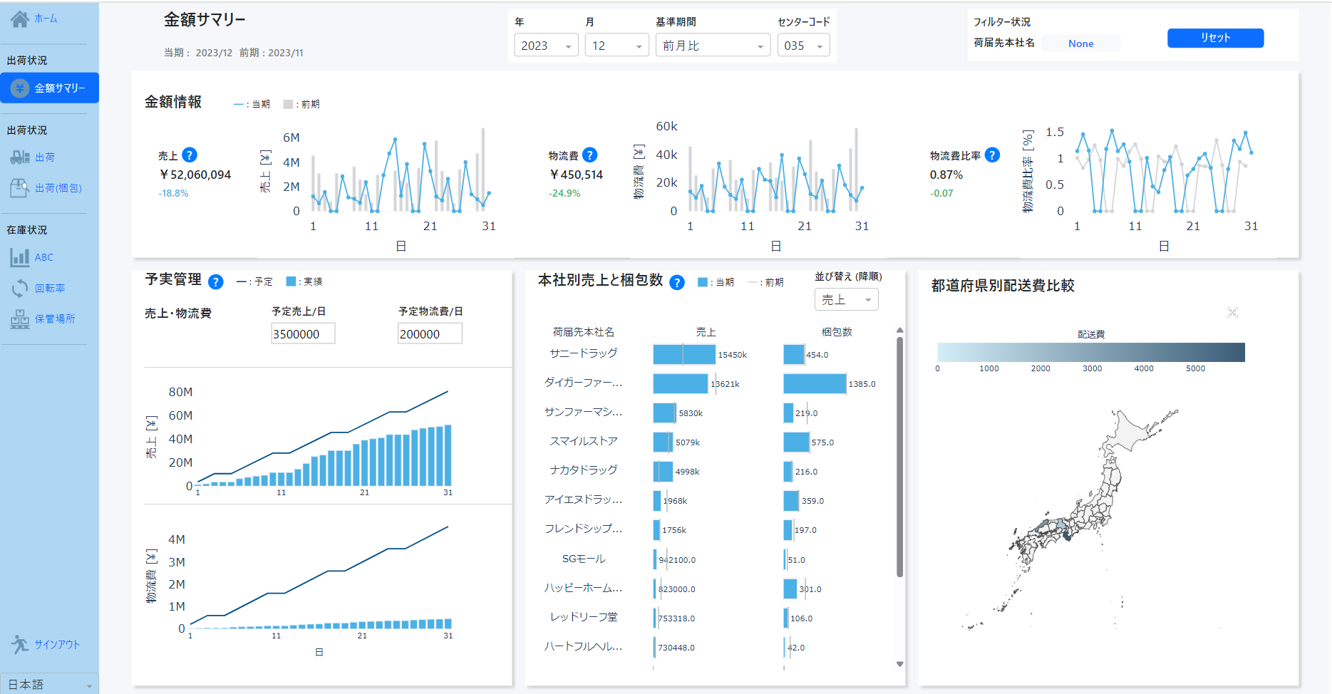 データから物流効率を低下させている要因を特定したことで、配送ルートや作業の見直しを行い、物流コストの最適化に成功しています。