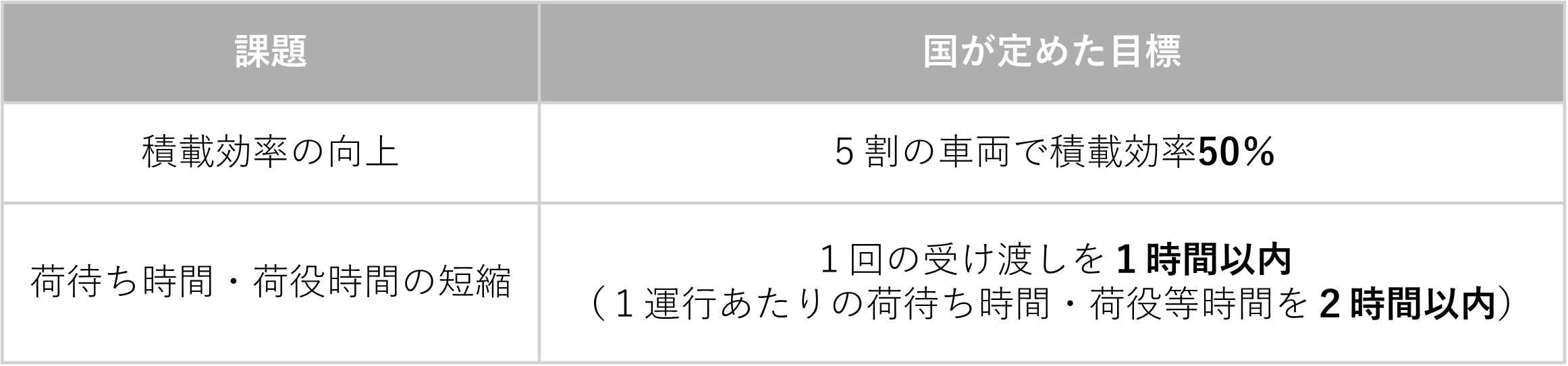 繁閑差の平準化や納品日の集約などによって、1回の運送でトラックに積載する貨物量を増加させる取り組みが必要です。