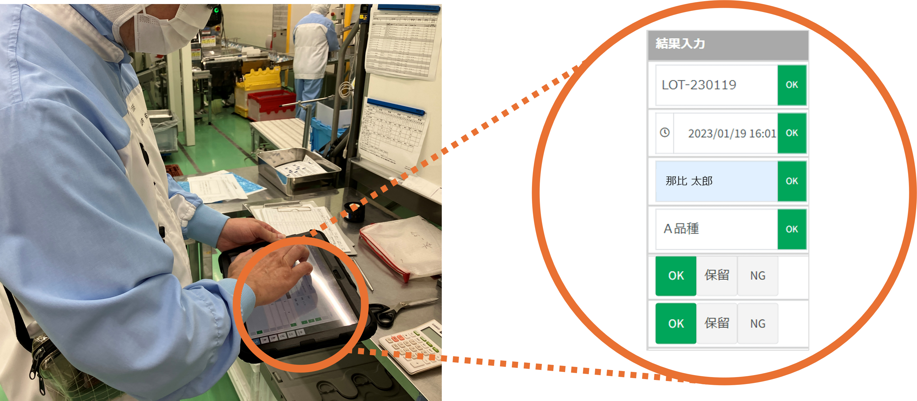 管理者も点検項目の確認時間が削減できていると実感しております。特にNG項目の確認がわかりやすいため、工場長も満足しておりました。