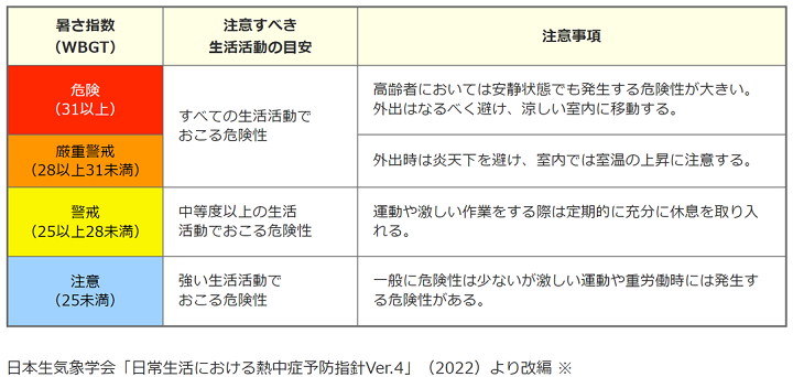 屋外での作業だけでなく、工場や倉庫など屋内でも、直射日光や空調設備状況によって値が高まるため、注意が必要です。