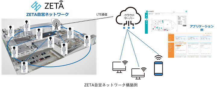 データは無線通信で収集する仕組みとなっており、本ソリューションではLPWA規格「ZETA」を使用しています。