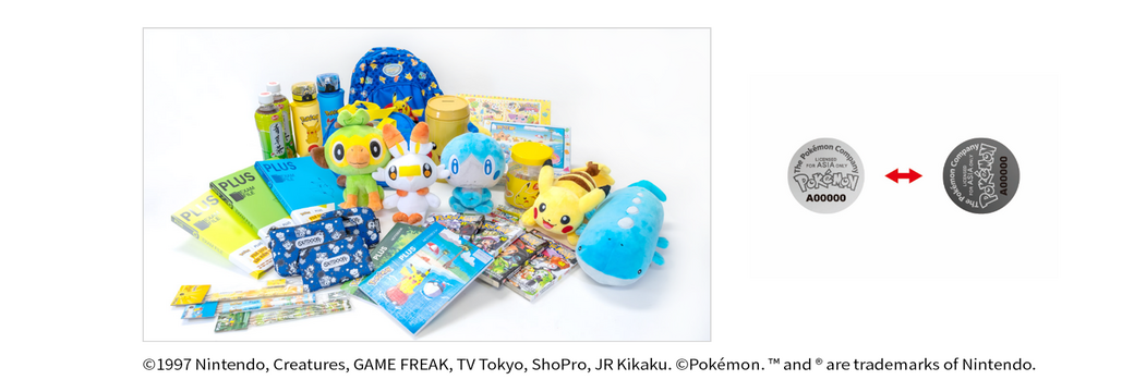 こうした状況の中「ポケモン」のアジア地域向けライセンス商品用ホログラムラベルを採用いただきました。誰でも一見するだけで真贋判定ができるホログラム「S-White」の利便性と、すべてのラベルに固有番号を設けることでライセンシーによる製造数量管理(提供ライセンス数以上の製造を防止する)の徹底が可能になる点で評価を頂いています。