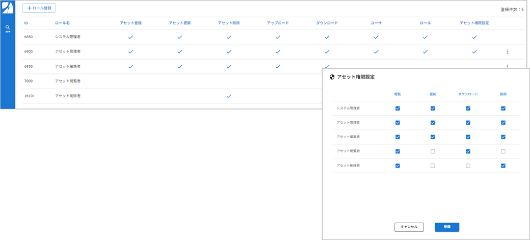 ・ユーザー・アセット単位で閲覧・削除・編集などの操作を制限します。