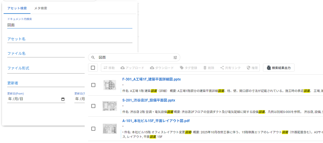 日常的にアクティブに使われるアセットはもちろんのこと、保管文書等のアセット管理~活用にも優れ、