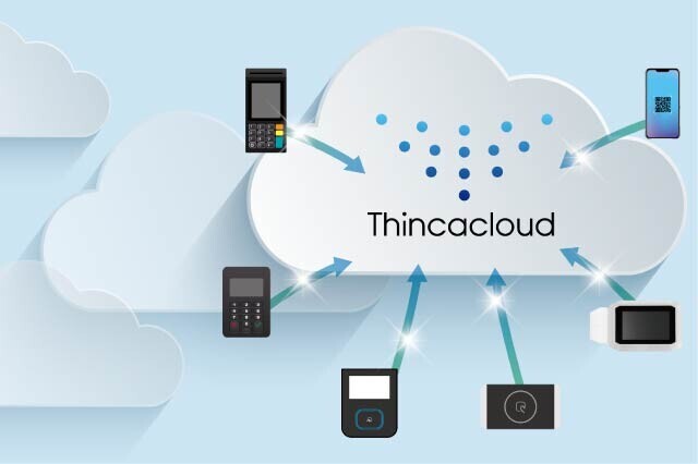 「Thincacloud®/シンカクラウド」はコストや手間をかけずにキャッシュレス決済を導入することができる、シンクライアント型のキャッシュレス決済プラットフォームです。電子マネー決済・QRコード決済のさまざまな決済ブランドに対応しています。サーバー側に機能を集約することで簡素化した安価な決済端末に対応している点が特徴です。