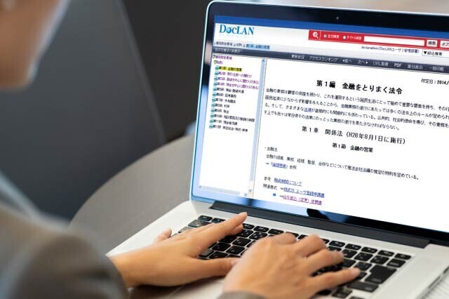 規程集やマニュアル類を簡単で効率的に公開・管理できる文書公開管理システム「DocLAN®︎」は、 同義語・あいまい検索など多彩な検索機能を備えており、目的の文書をスムーズに閲覧することが可能です。また、Wordで作成したデータは最新の文書と変更前の文書を比較できる新旧差分表示機能を備えており、さまざまな文書の管理や検索をWebブラウザーで効率的に行えます。