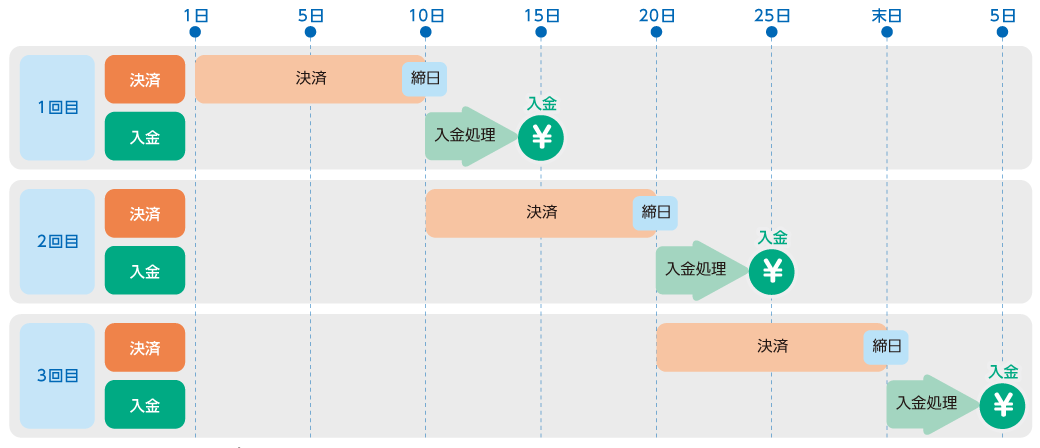 ※ 月3回(10日・20日・末日締め)でサプライヤーへの入金処理を行います。