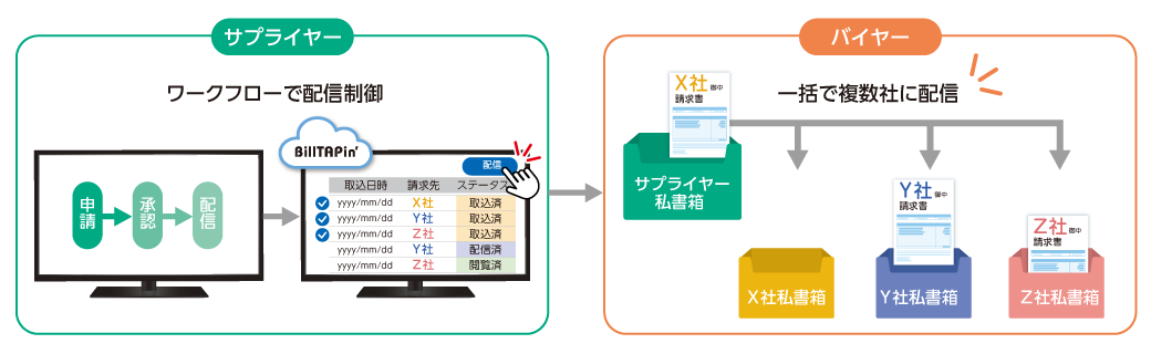 - 【for サプライヤー】 複数取引先への一括電子配信