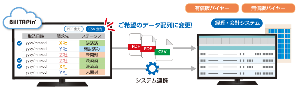 - 【for バイヤー】 ご利用中の経理・会計システムに合わせて請求書出力