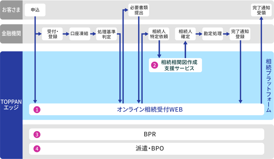 従来からあるBPOサービスに加えて、申請の受付WEBサイト(オンライン相続受付WEB)、