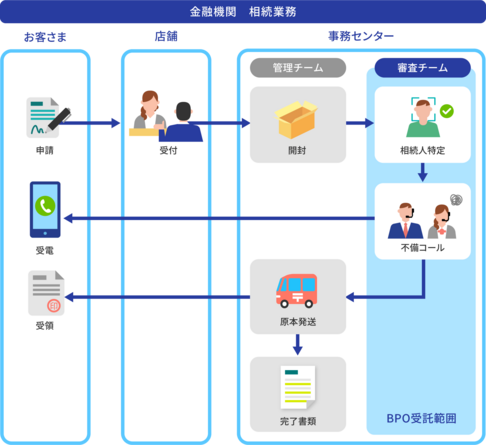 また、相続業務プロセスの抜本的な改革を支援するBPRサービス、それらを活用し一括で受託するBPOサービスを提供します。